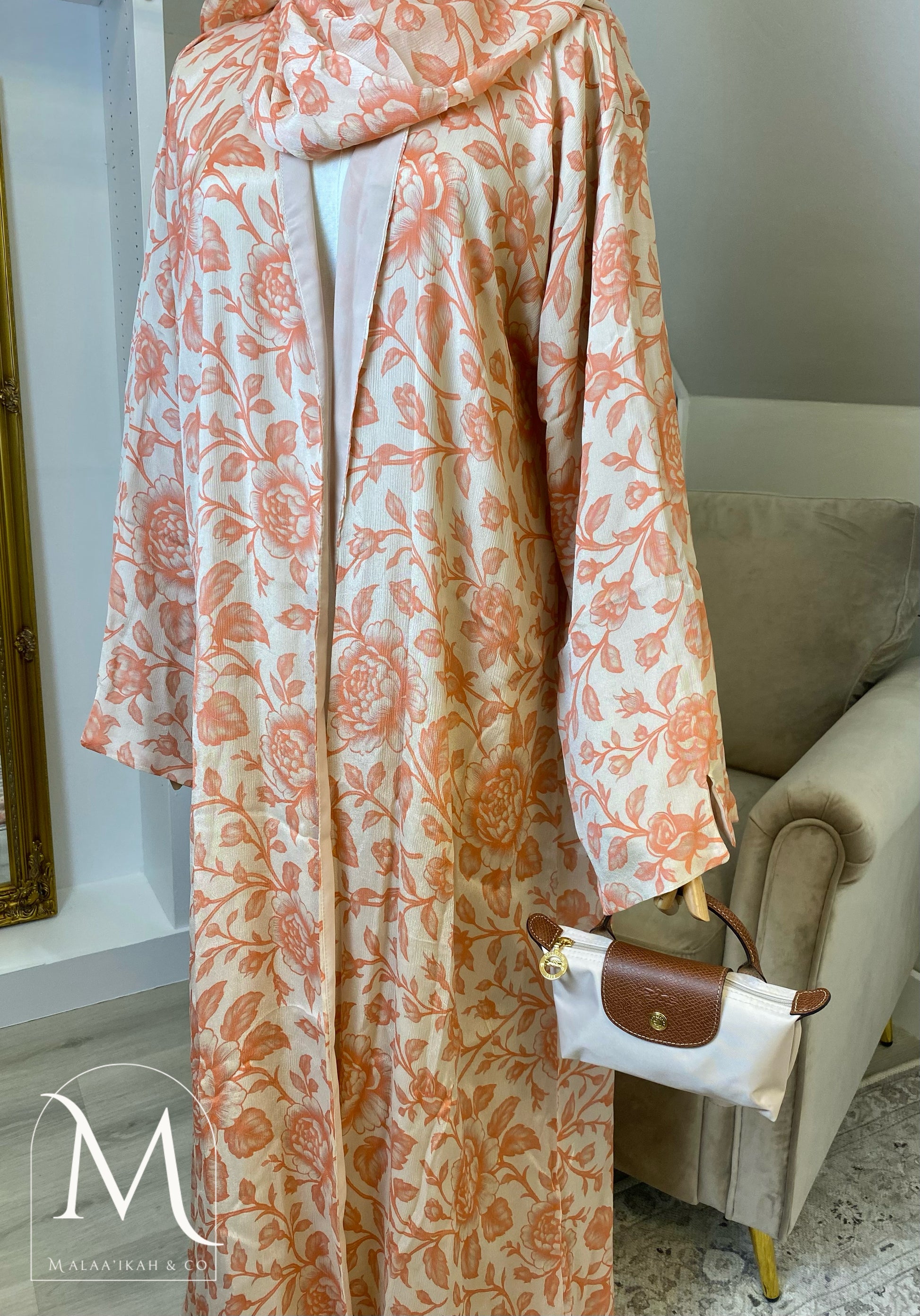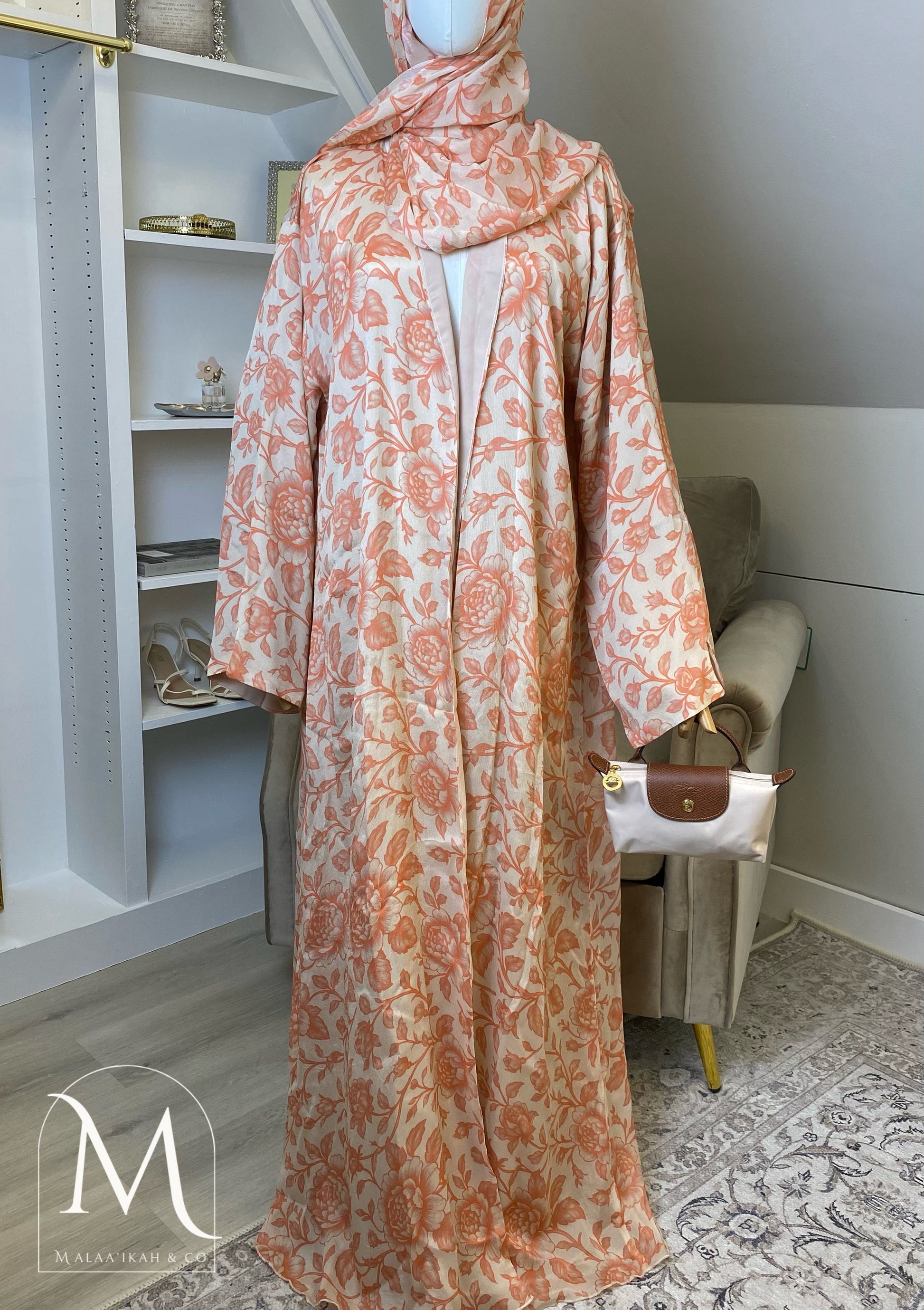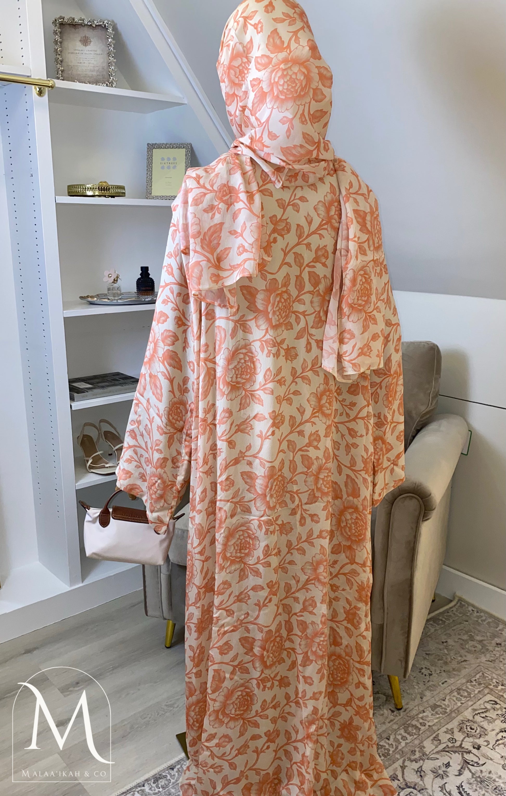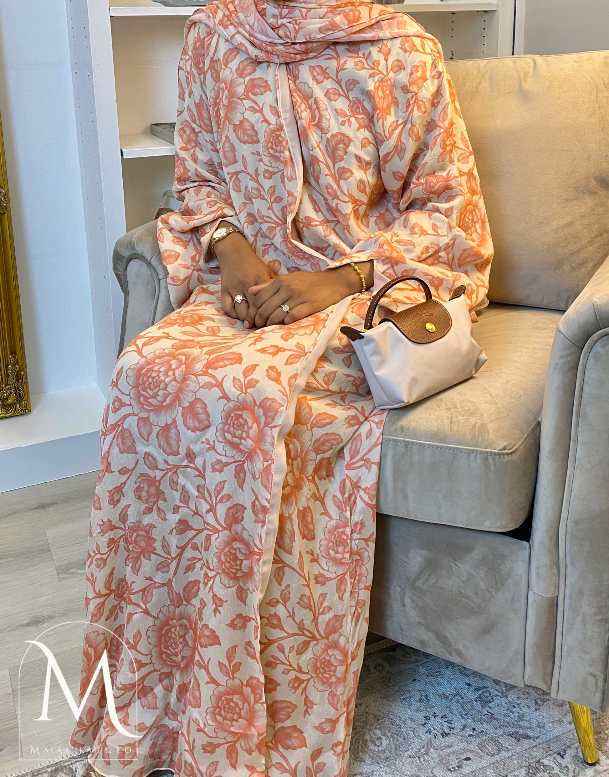 ‘Bloom’ 🌸 – handcrafted with care from luxurious fabrics, featuring a double layer of flowing chiffon and a soft batana lining for comfort.